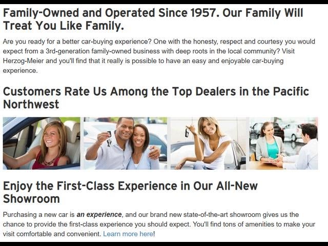 Come experience the Herzog-Meier difference! Family owned for over 60 years, we care about our customers. Call, inquire online or come see us for a test drive today! Google 4.7 stars - DealerRater 4.7 stars - Yelp 4.3 stars - Cargurus 4.9 stars.