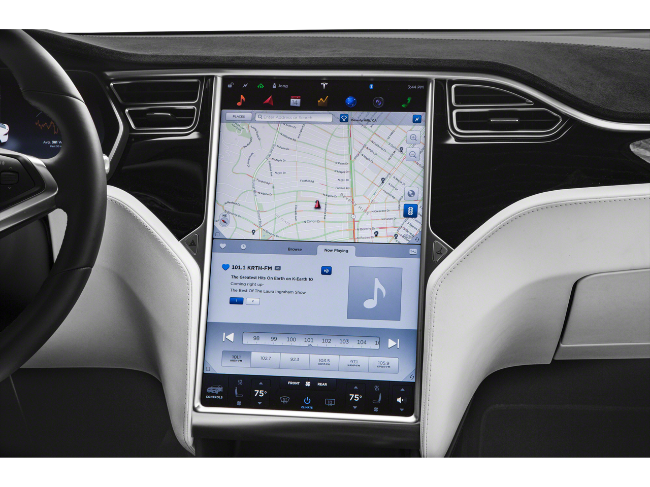 - Radio: Premium Audio System -inc: Specifically tuned for Tesla's ultra-quiet cabin, 1-year premium connectivity (satellite maps w/live traffic visualization, in-car internet streaming music and media, video streaming, caraoke and internet browser) and music and media over Bluetooth®