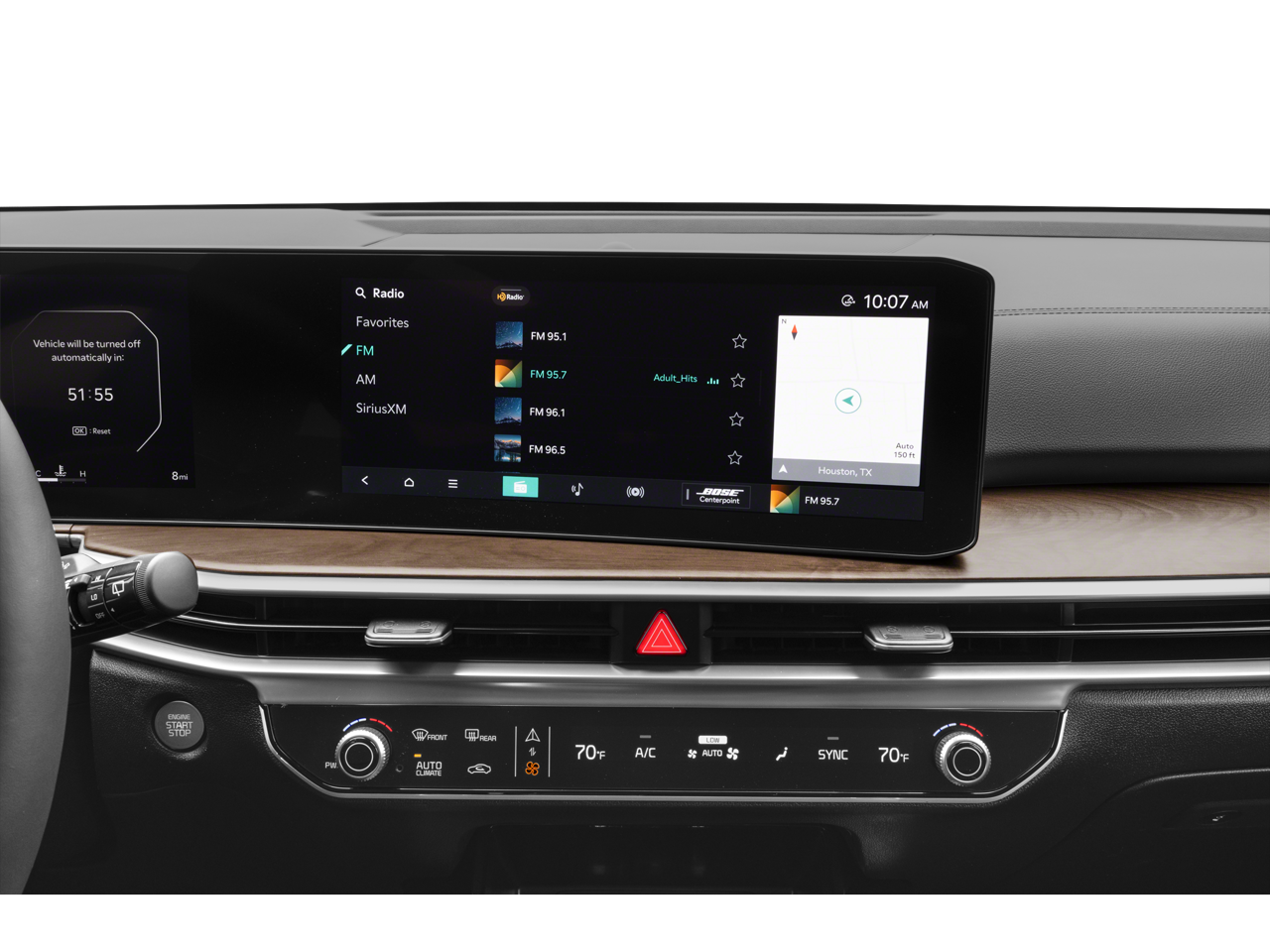 - Radio: AM/FM Bose Premium Audio System -inc: 12.3" ccNC touchscreen, navigation, HD Radio, Bluetooth® w/audio remote control, wireless Android Auto and wireless Apple CarPlay, voice recognition, Sirius XM, modem, Kia Connect, Wi-Fi hot spot, Over-The-Air Updates (OTA), 12 speakers including tweeters, amp, subwoofer and USB